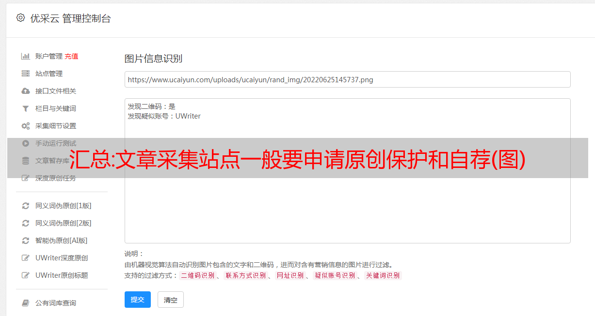 优采云 发布时间: 2022-11-05 05:08汇总:文章采集站点一般要申请原创保护和自荐(图)
