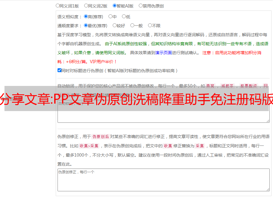 分享文章:PP文章伪原创洗稿降重助手免注册码版 V3.64 最新免费版