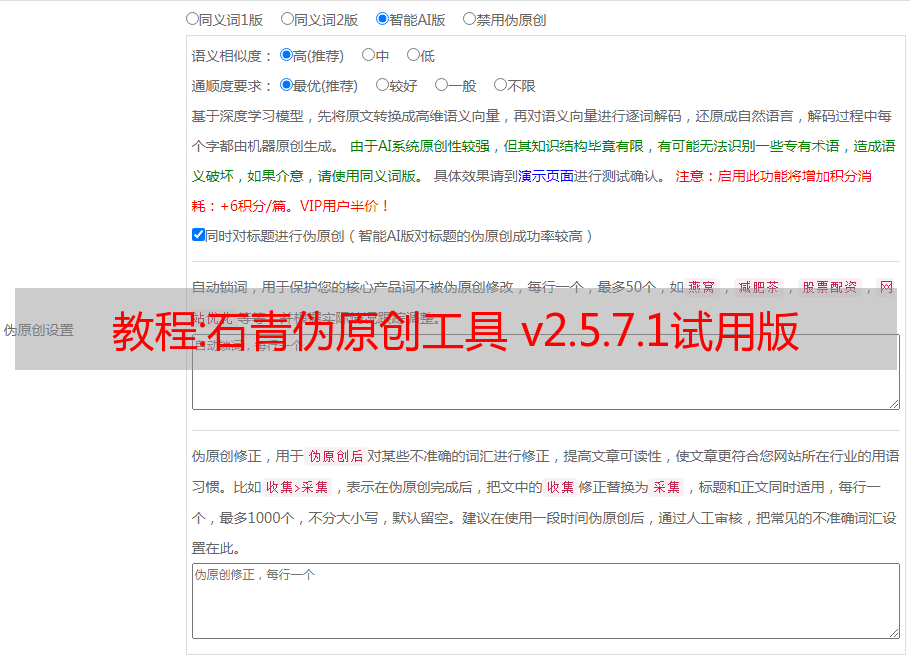 教程:石青伪原创工具 v2.5.7.1试用版