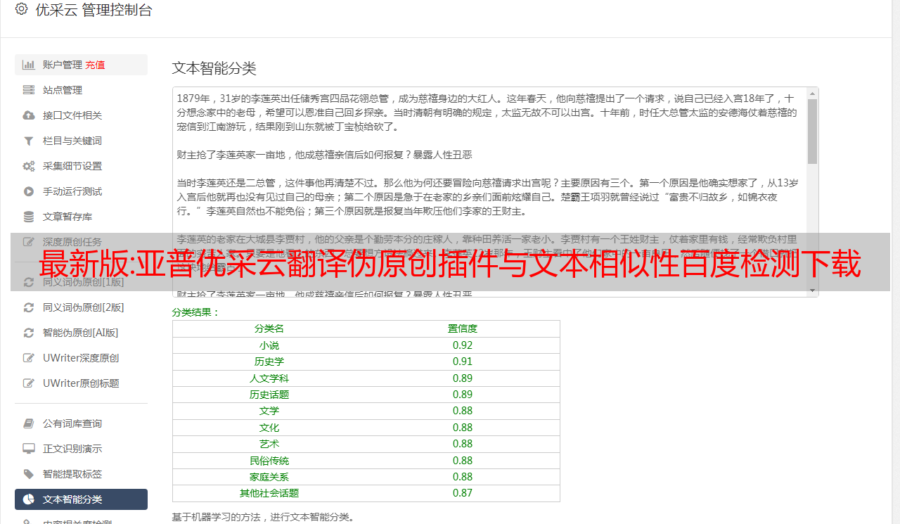 最新版:亚普优采云翻译伪原创插件与文本相似性百度检测下载评论软件详情对比