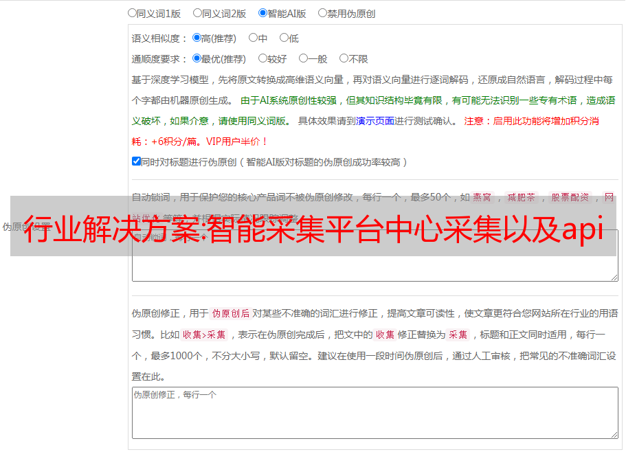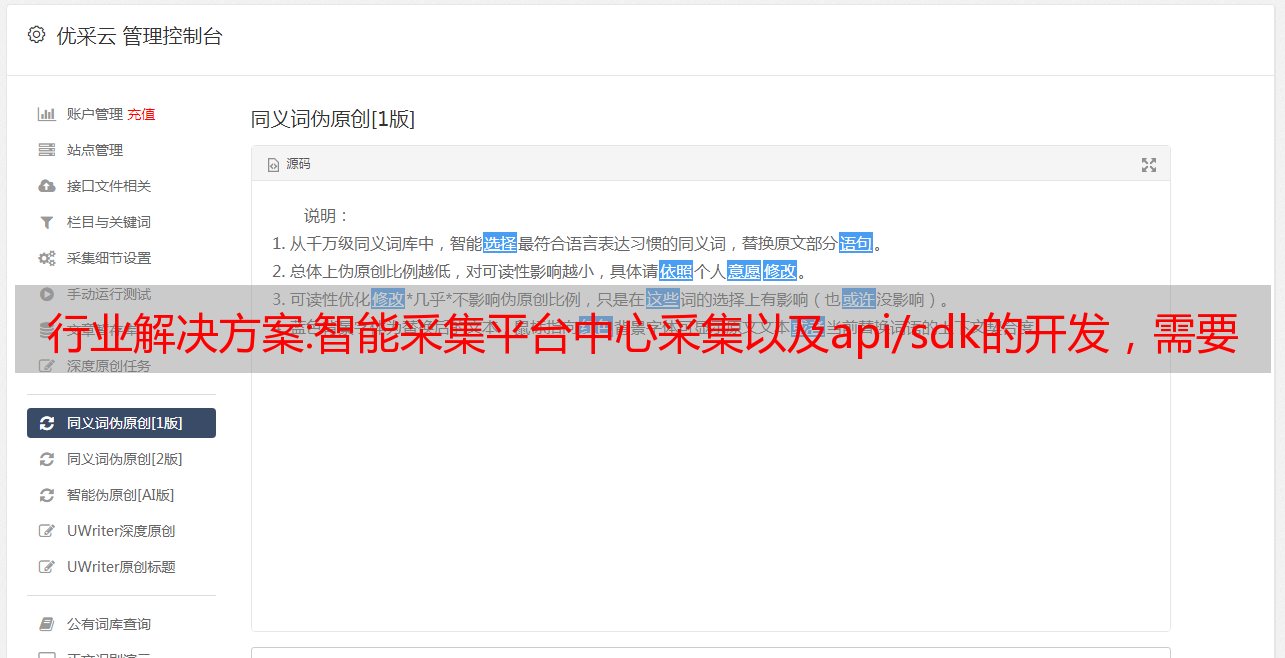 智能采集平台中心采集以及api/sdk的开发,自建个性化官网服务以及配套的采集与登录体系。详细对应的官网链接:点击即可进入。