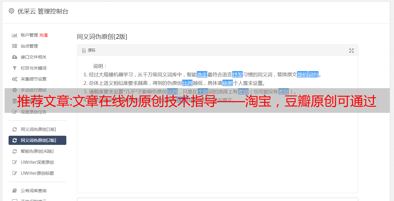推荐文章:文章在线伪原创技术指导——淘宝,豆瓣原创可通过