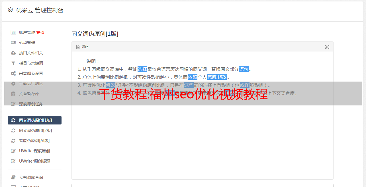 优采云 发布时间: 2022-11-06 22:39干货教程:福州seo优化视频教程