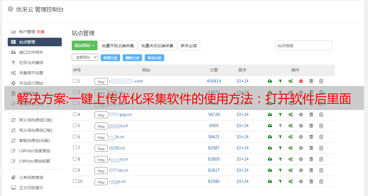 优采云 发布时间: 2022-11-07 03:13解决方案:一键上传优化采集软件的使用方法:打开软件后里面会有上传图片
