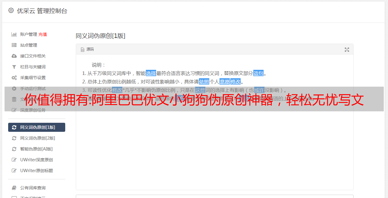 你值得拥有:阿里巴巴优文小狗狗伪原创神器,轻松无忧写文