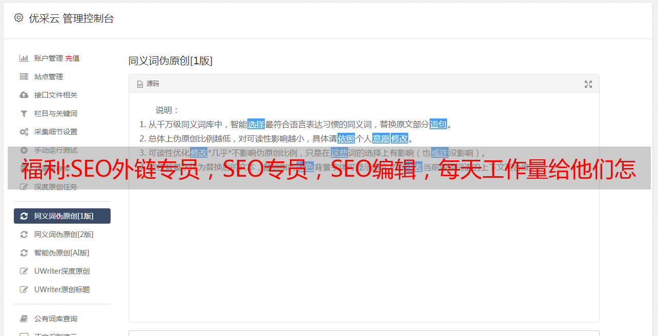 优采云 发布时间: 2022-11-07 16:45福利:SEO外链专员,SEO专员,SEO编辑,每天工作量给他们怎么安排?
