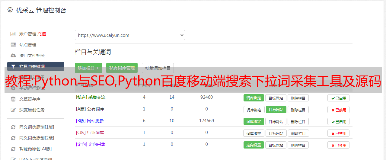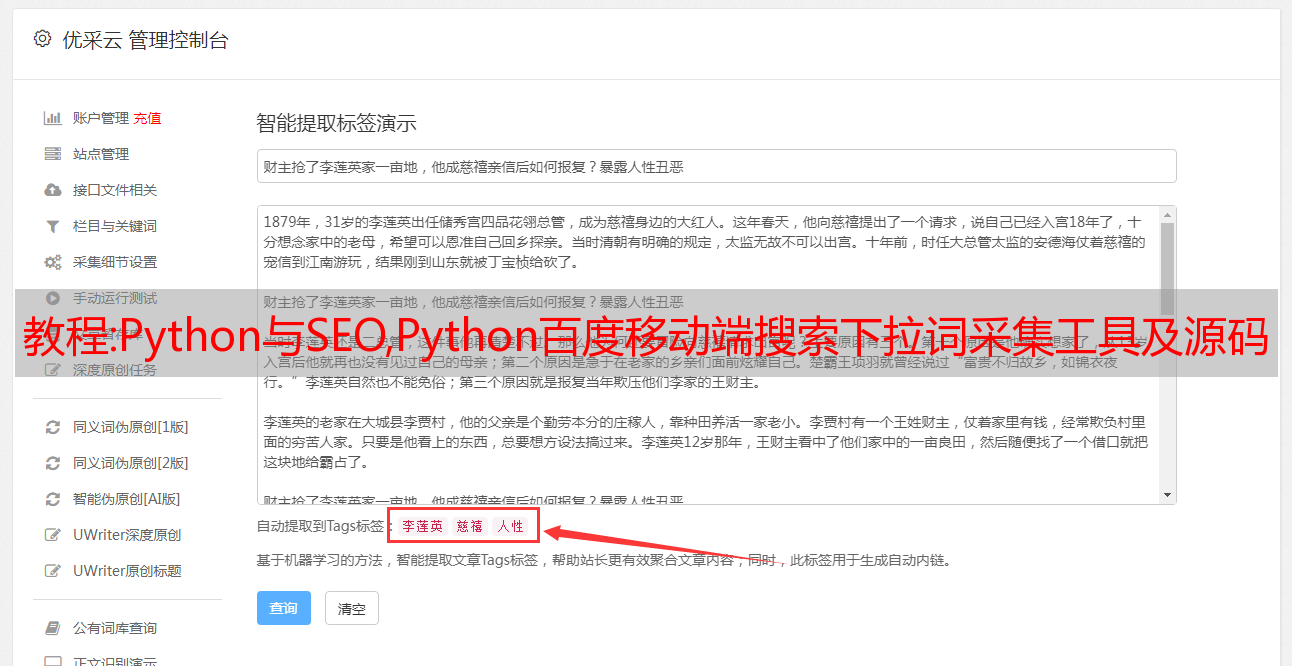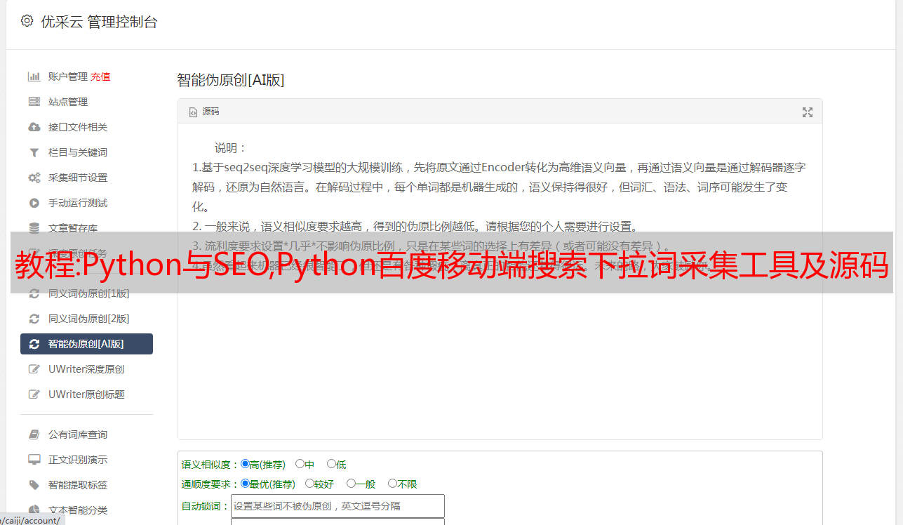 优采云 发布时间: 2022-11-07 17:45教程:Python与SEO,Python百度移动端搜索下拉词采集工具及源码