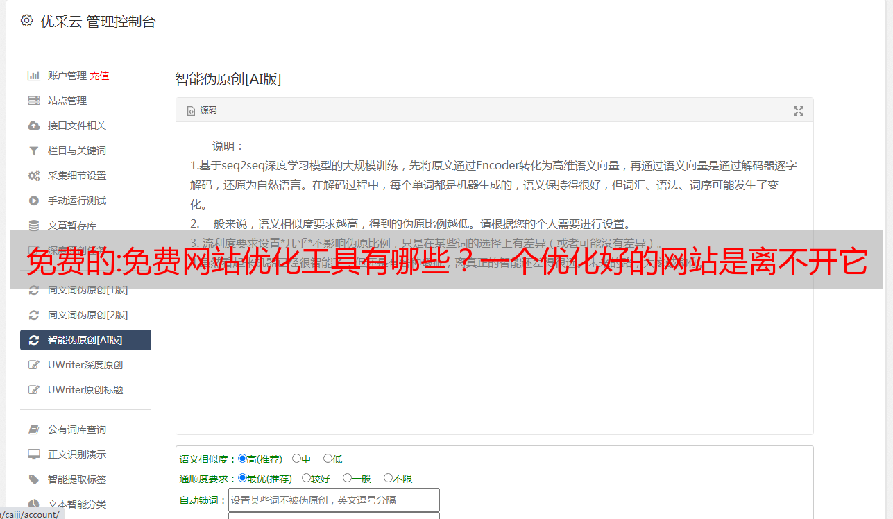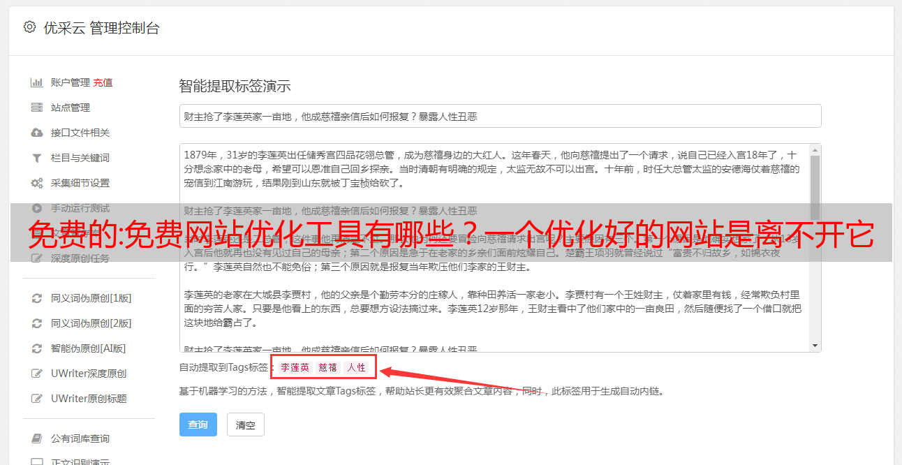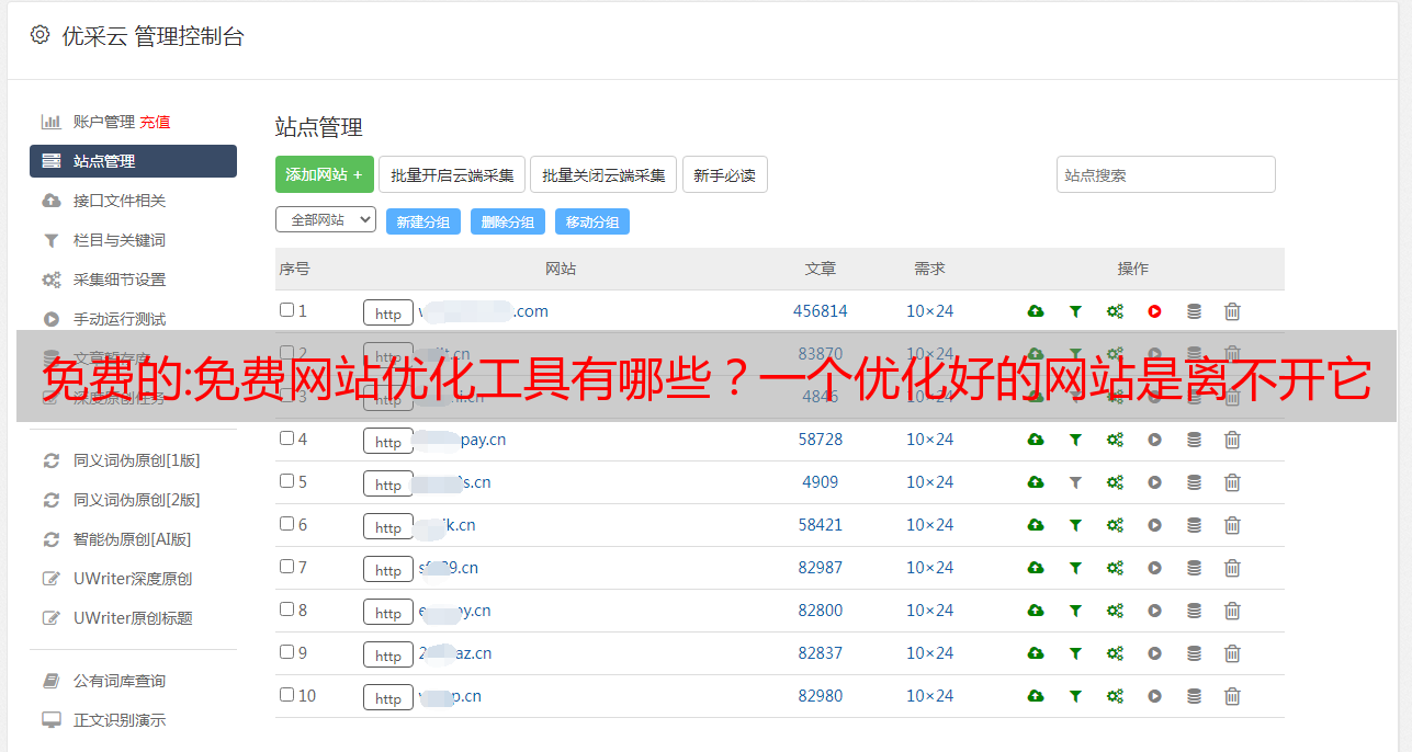 优采云 发布时间: 2022-11-07 19:43免费的:免费网站优化工具有哪些?一个优化好的网站是离不开它