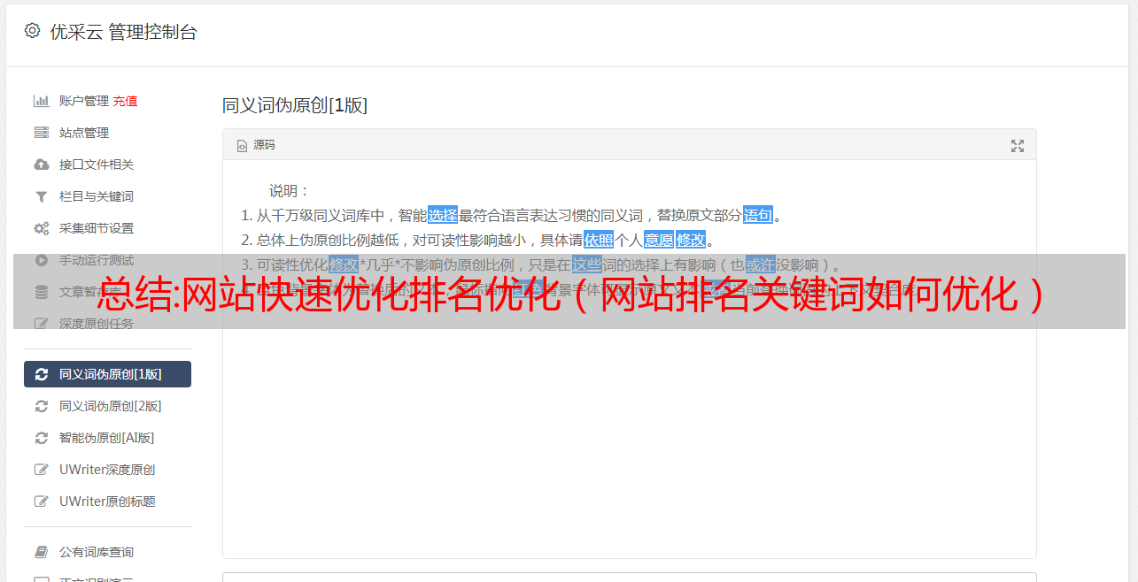 优采云 发布时间: 2022-11-07 20:16总结:网站快速优化排名优化(网站排名关键词如何优化)
