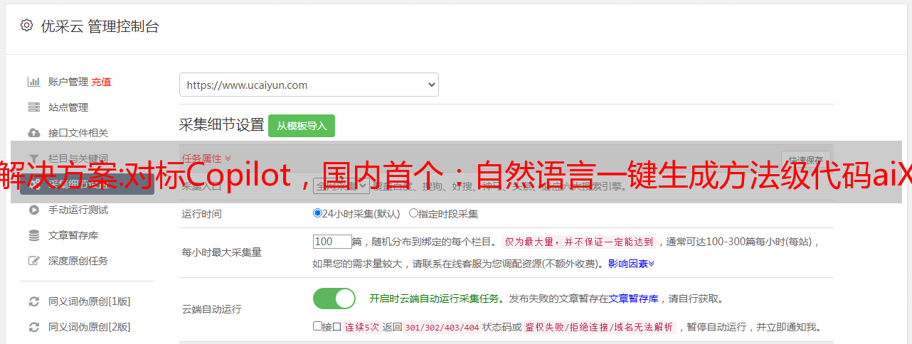 百度刚刚发布了智能书写界面,集成了百度领先的自然语言处理和知识图谱技术,提供自动书写和辅助书写能力,全面提升内容创作效率。我们不知道它是否可以改进。毕竟,我们不是一个专注的内容创作者,我们也不能很好地判断它。粗略体验了一下,感觉像是模板文字的升级版。相应的参数在数据库中提供并插入到 文章 中。提供从接口数据变量插入、在同一位置随机输出同义词、从数据变量导出输出等。