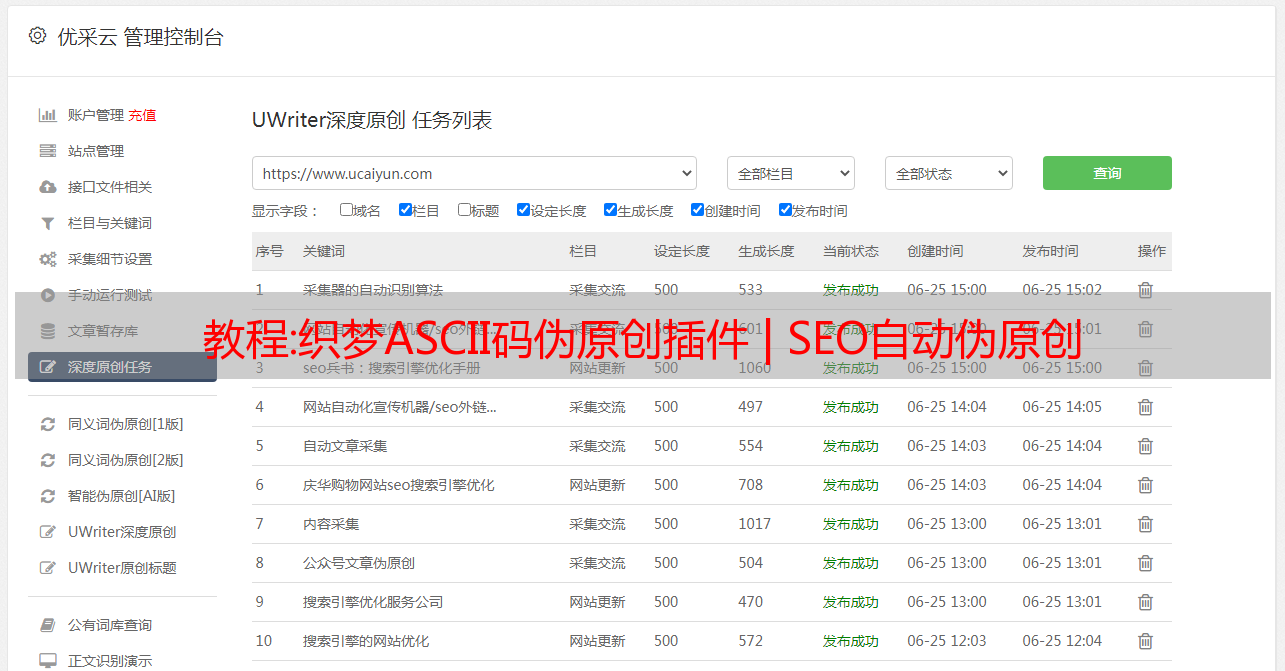优采云 发布时间: 2022-11-08 00:15教程:织梦ASCII码伪原创插件 | SEO自动伪原创