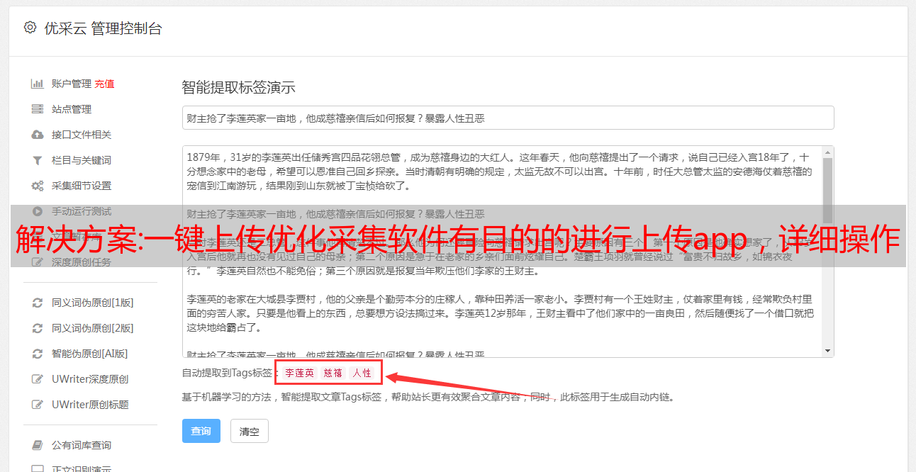 优采云 发布时间: 2022-11-08 01:19解决方案:一键上传优化采集软件有目的的进行上传app,详细操作