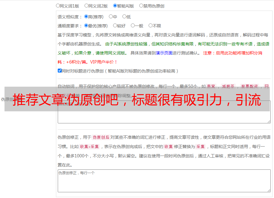 推荐文章:伪原创吧,标题很有吸引力,引流文章有点你的
