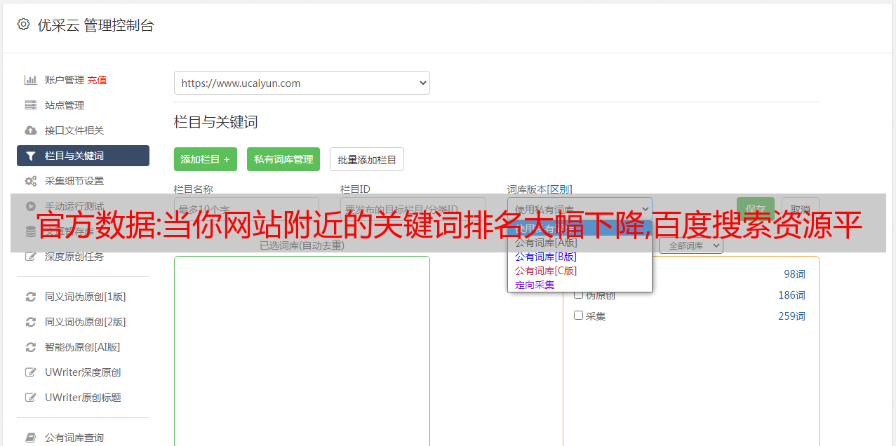 优采云 发布时间: 2022-11-08 03:14官方数据:当你网站附近的关键词排名大幅下降,百度搜索资源平台反馈你的词