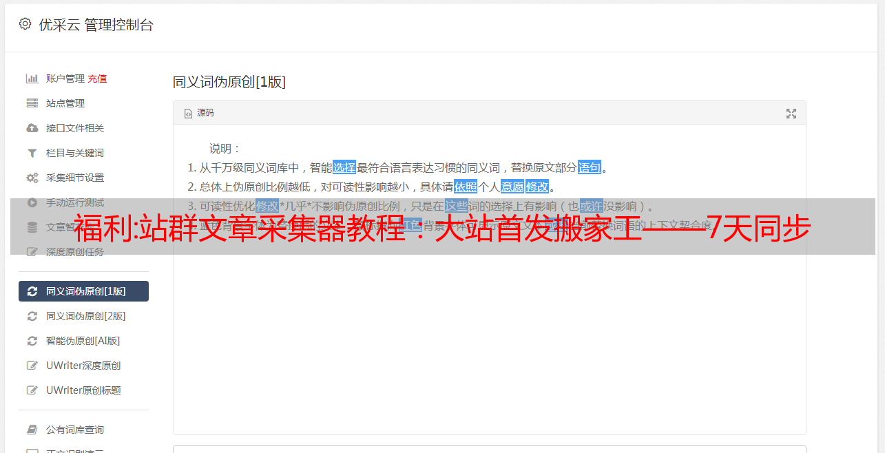 福利:站群文章采集器教程:大站首发搬家工——7天同步