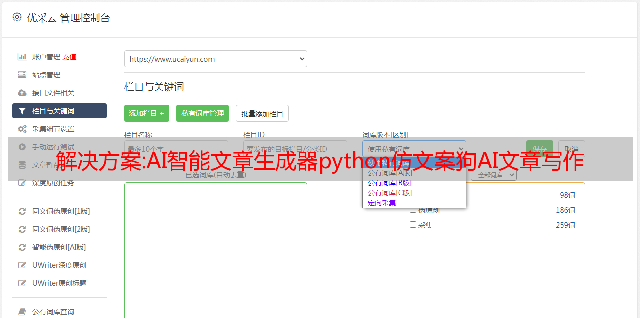 优采云 发布时间: 2022-11-09 15:34解决方案:AI智能文章*敏*感*词*python仿文案狗AI文章写作