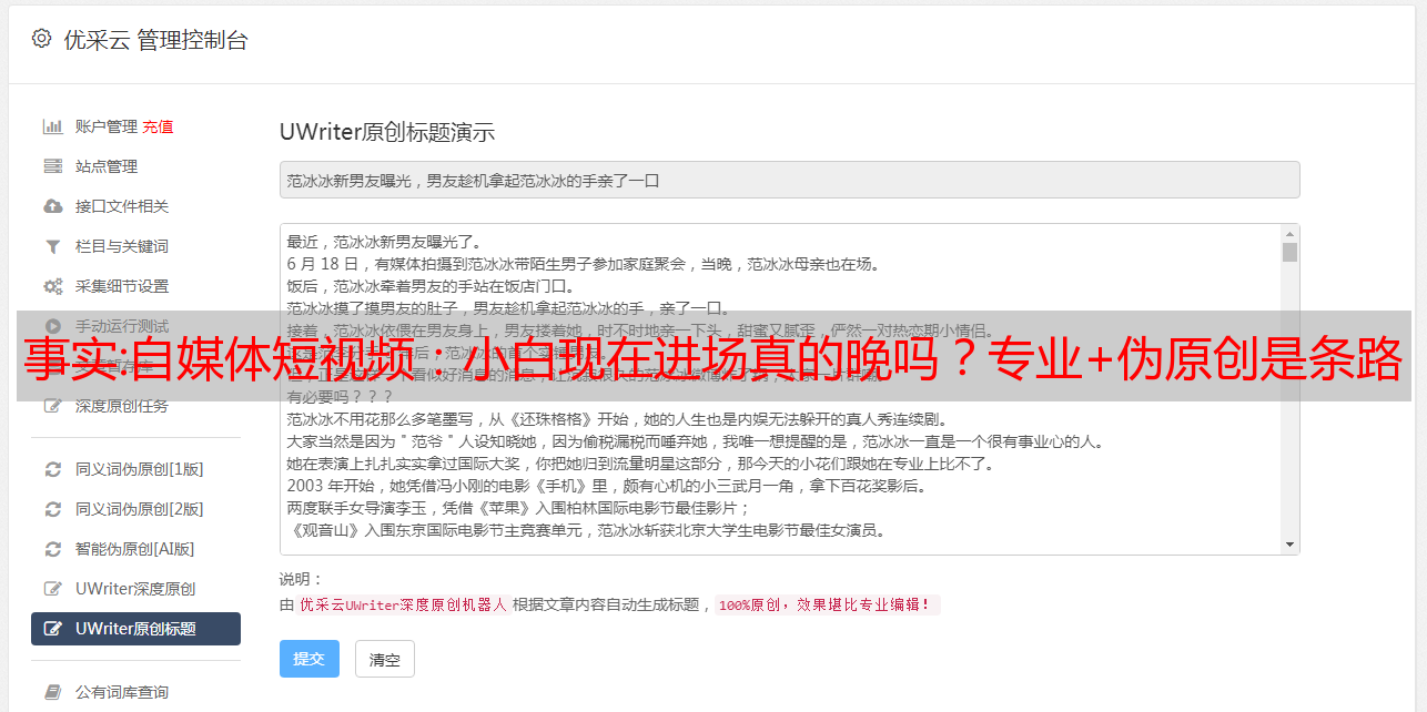 优采云 发布时间: 2022-11-09 23:13事实:自媒体短视频:小白现在进场真的晚吗?专业+伪原创是条路