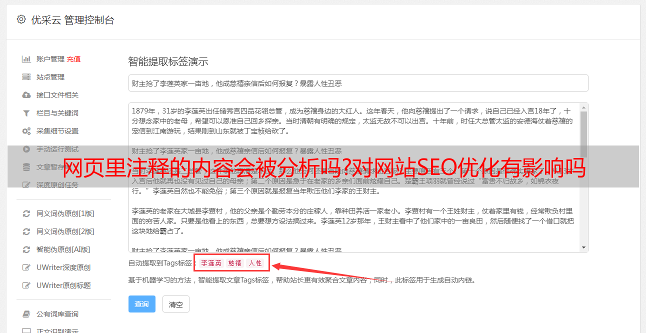 优采云 发布时间: 2021-05-28 03:21网页里注释的内容会被分析吗?对网站SEO优化有影响吗
