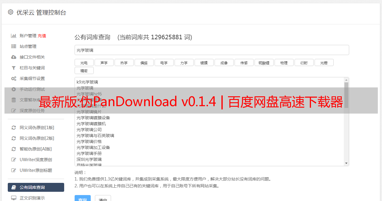 优采云 发布时间: 2022-11-10 12:15最新版:伪PanDownload v0.1.4 | 百度网盘高速下载器