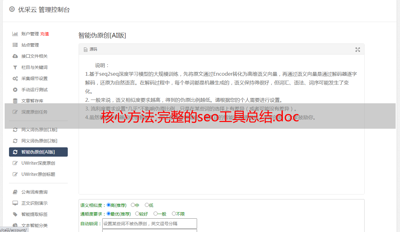 优采云 发布时间: 2022-11-11 03:19核心方法:完整的seo工具总结.doc