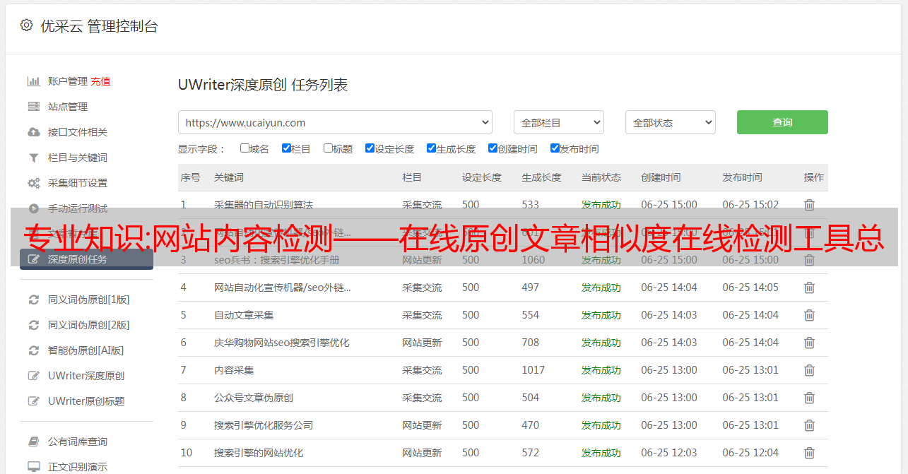 优采云 发布时间: 2022-11-11 10:36专业知识:网站内容检测——在线原创文章相似度在线检测工具总汇入门基础_网站菜鸟知识