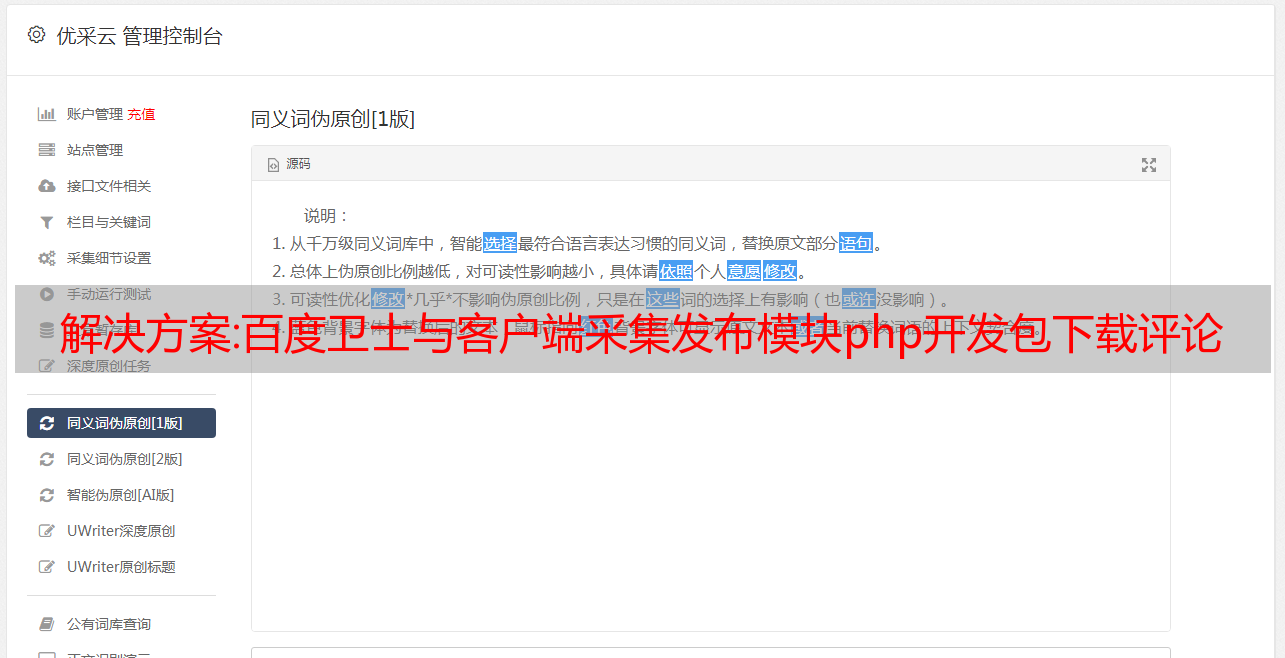 优采云 发布时间: 2022-11-11 14:55解决方案:百度卫士与客户端采集发布模块php开发包下载评论软件详情对比