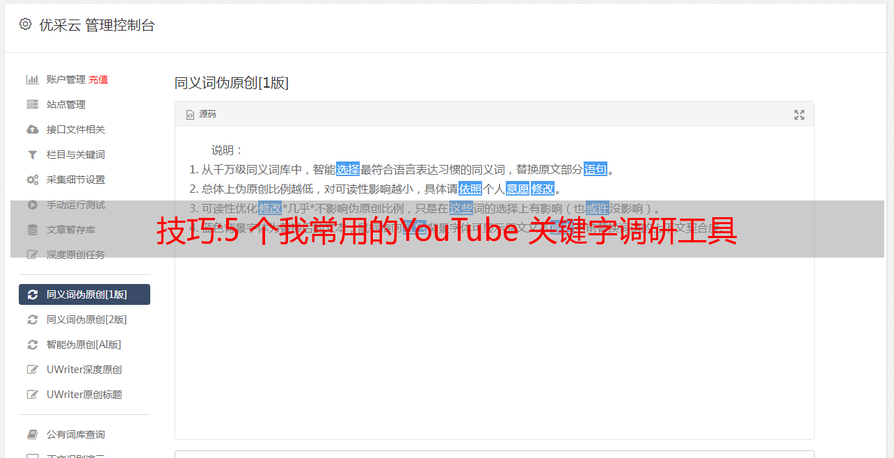 优采云 发布时间: 2022-11-11 16:57技巧:5 个我常用的YouTube 关键字调研工具