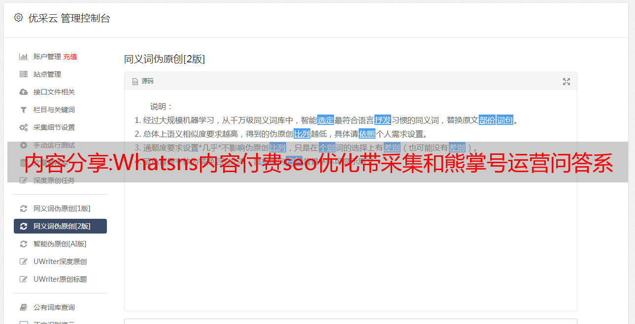 内容分享:Whatsns内容付费seo优化带采集和熊掌号运营问答系统源码