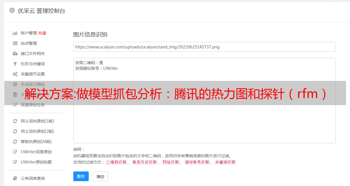 优采云 发布时间: 2022-11-12 18:33解决方案:做模型抓包分析:腾讯的热力图和探针(rfm)
