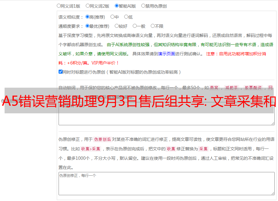 A5错误营销助理9月3日售后组共享: 文章采集和网络...
