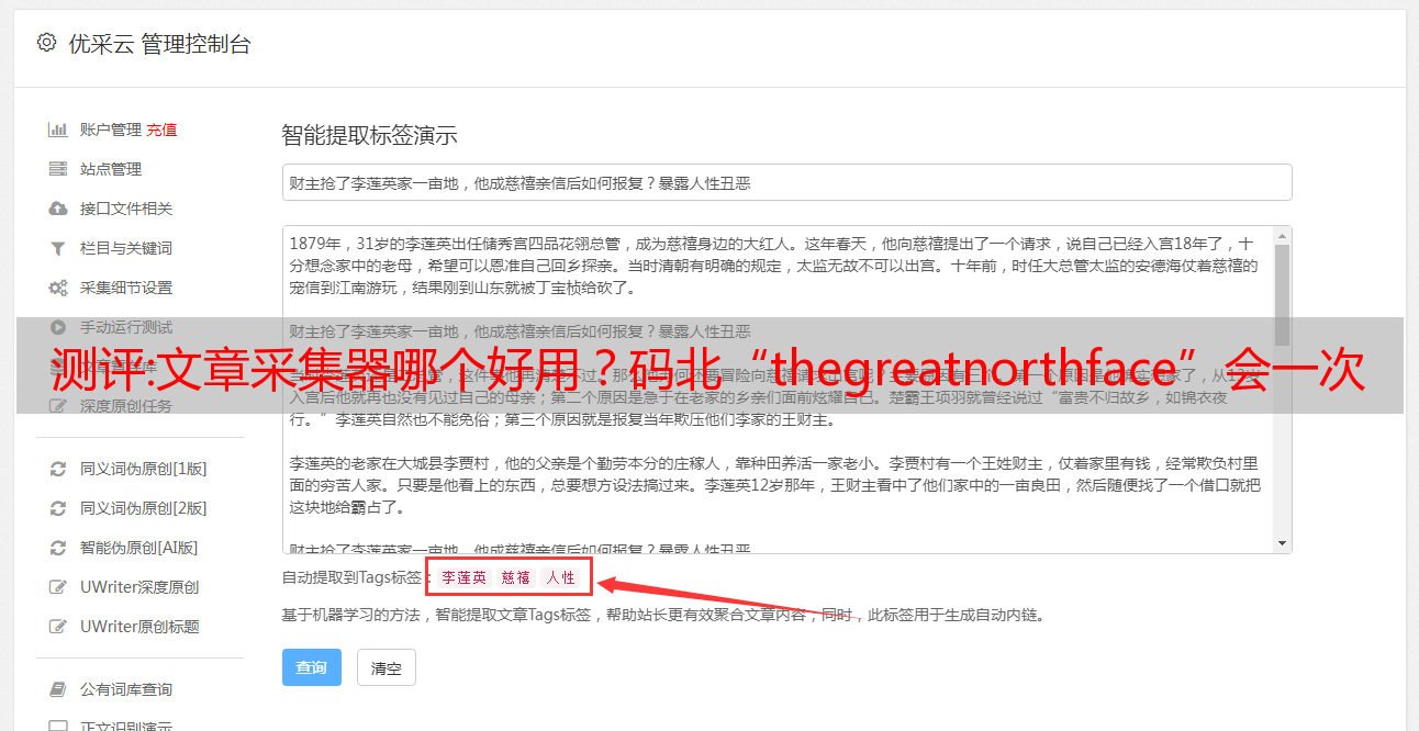 测评:文章采集器哪个好用?码北“thegreatnorthface”会一次性推送