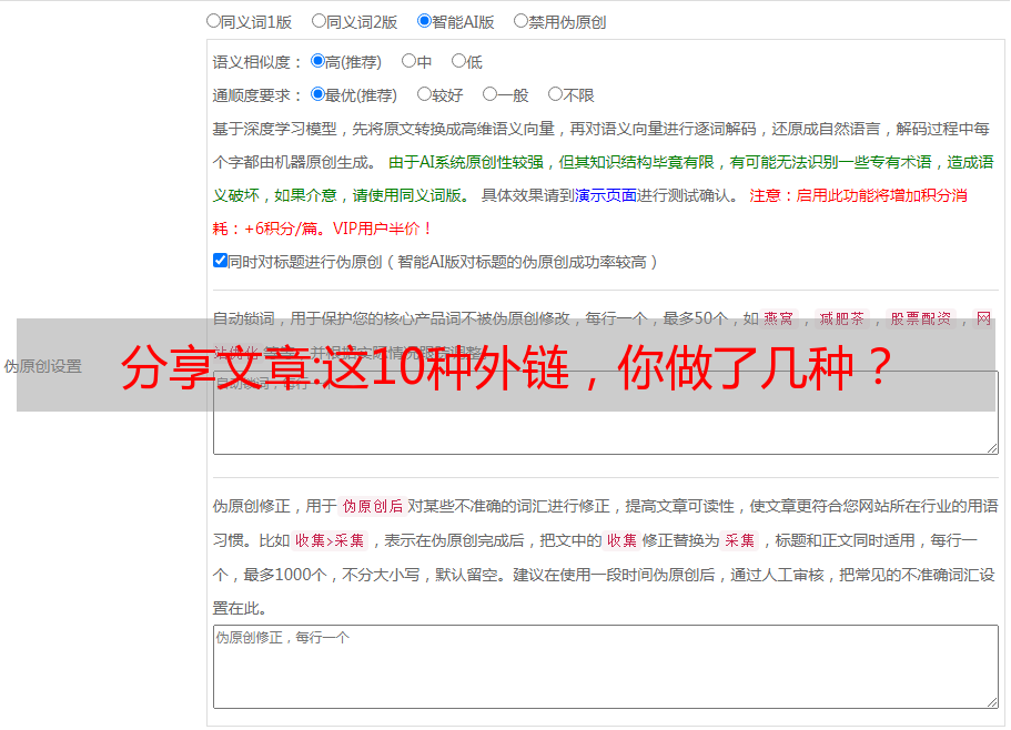 4、伪原创保留字(在文章原创中设置核心字不要为伪原创)