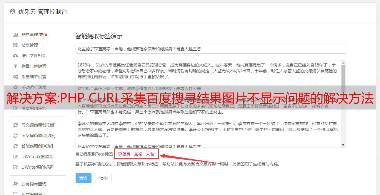 优采云 发布时间: 2022-11-17 04:57解决方案:PHP CURL采集百度搜寻结果图片不显示问题的解决方法