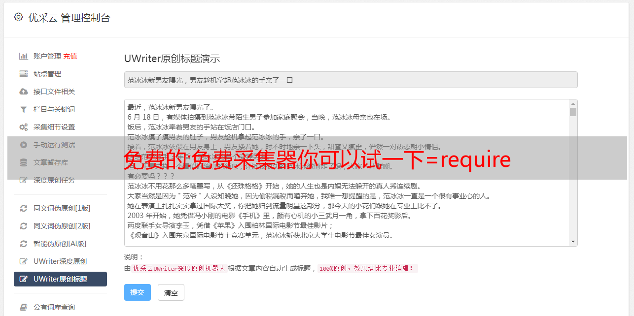 免费的:免费采集器你可以试一下=require