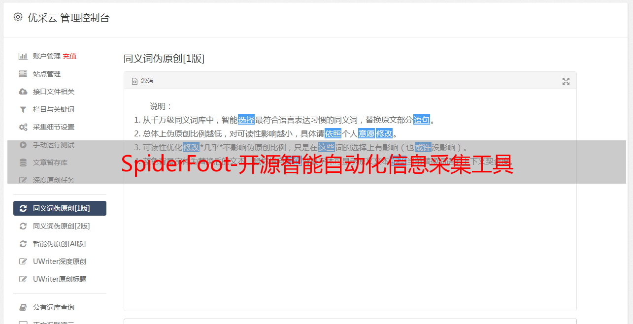优采云 发布时间: 2020-08-07 11:05项目主页: 项目简介: Spiderfoot是一种开源智能自动化工具. 其目标是针对给定目标(可能是IP地址,域名,主机名或网络子网)自动化采集情报的过程. Spiderfoot可用于进攻,即作为黑匣子渗透测试来采集有关目标在Internet上泄漏的相关信息. Spiderfoot具有许多内置模块和接口. 通过这些模块和界面,可以访问Internet来获取与目标相关的材料,然后对其进行整理. 用法: 下载地址: Windows安装: 直接解压缩,然后运行sf. 它已经打包. 环境. Linux安装: