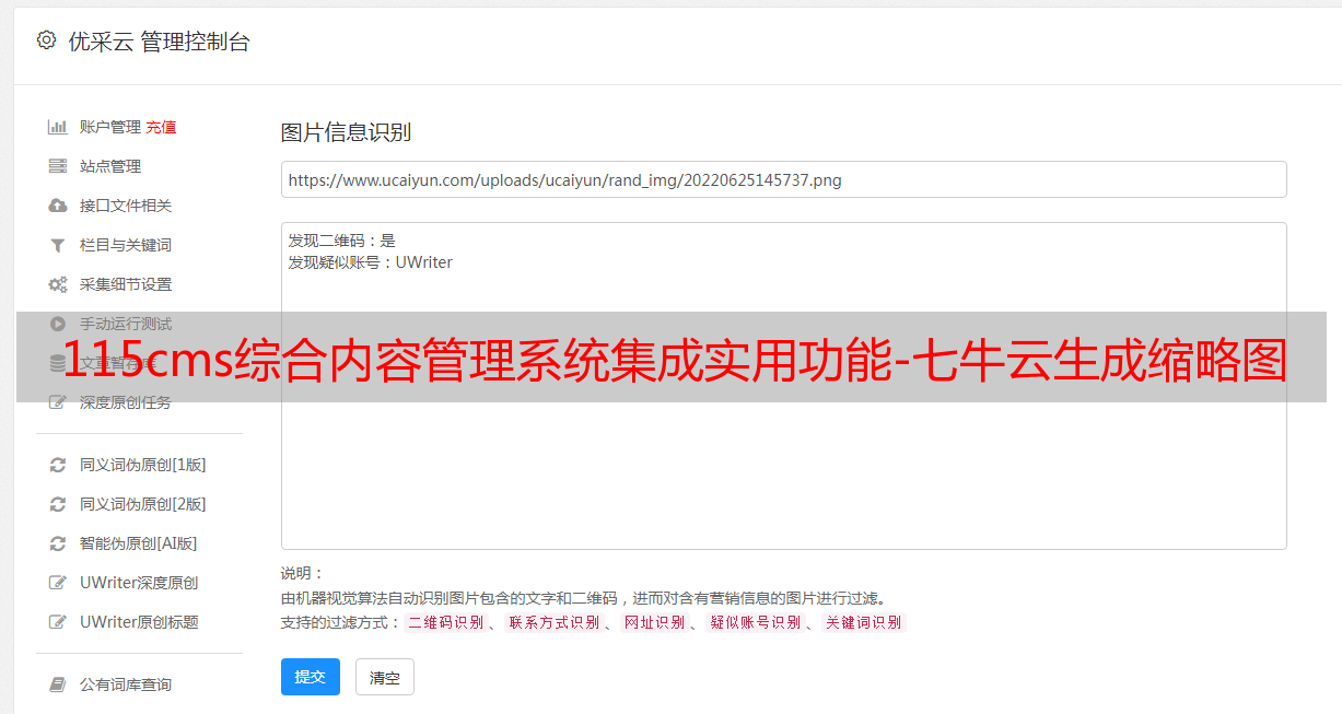 优采云 发布时间: 2021-05-29 21:14115cms综合内容管理系统集成实用功能-七牛云生成缩略图