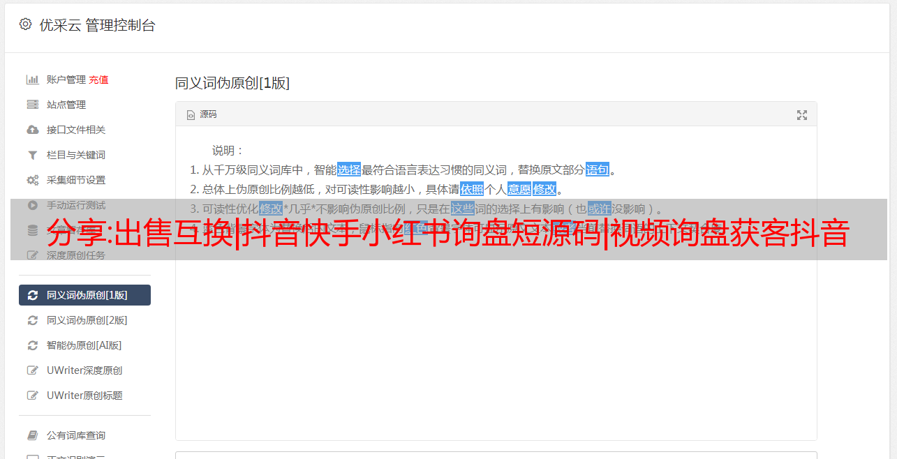 分享:出售互换|抖音快手小红书询盘短源码|视频询盘获客抖音监控同行抖音采集客户源码
