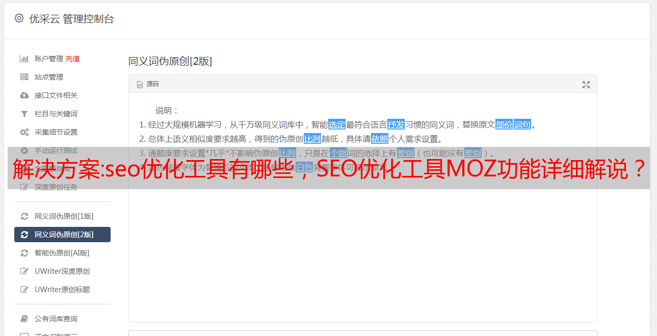 优采云 发布时间: 2022-12-04 11:50解决方案:seo优化工具有哪些,SEO优化工具MOZ功能详细解说?