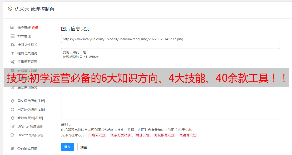 优采云 发布时间: 2022-12-05 05:12技巧:初学运营必备的6大知识方向、4大技能、40余款工具!!