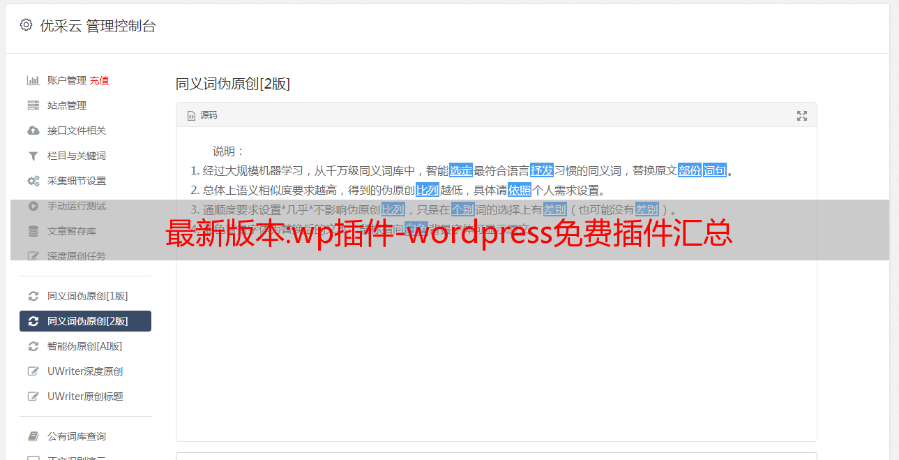 1.通过weaving WP插件快速填充内容采集,按照关键词采集文章实现(WP插件自带关键词生成功能)。