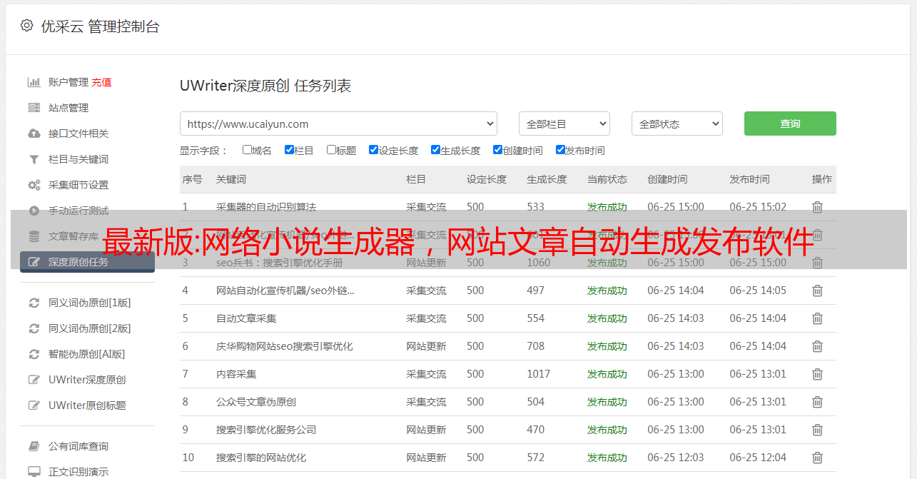 优采云 发布时间: 2022-12-07 17:32最新版:网络小说*敏*感*词*,网站文章自动生成发布软件