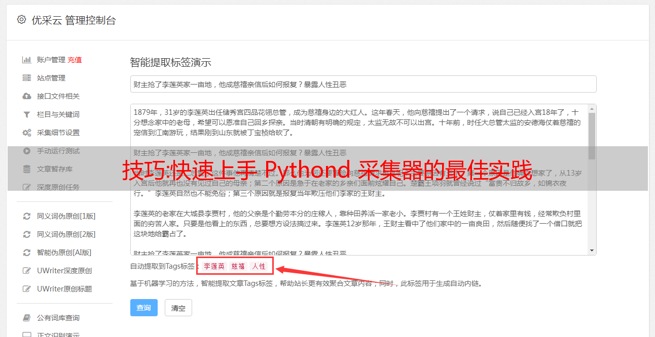 优采云 发布时间: 2022-12-07 22:38技巧:快速上手 Pythond 采集器的最佳实践