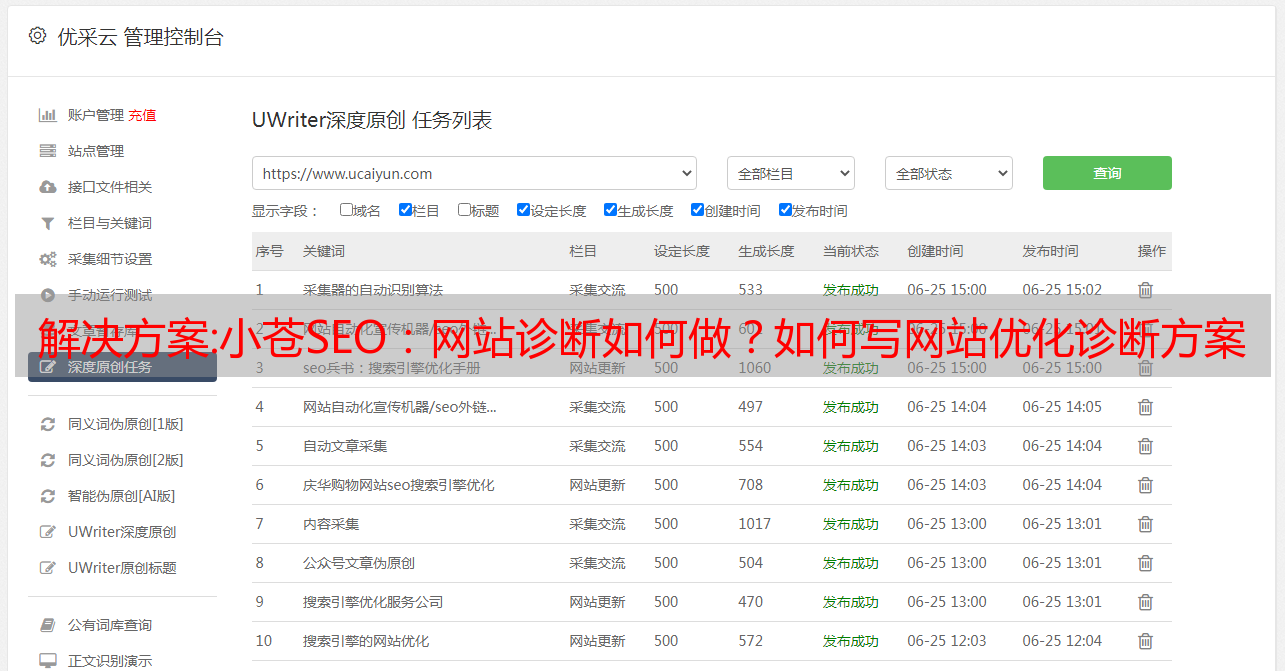 优采云 发布时间: 2022-12-08 00:24解决方案:小苍SEO:网站诊断如何做?如何写网站优化诊断方案?【实例演示】