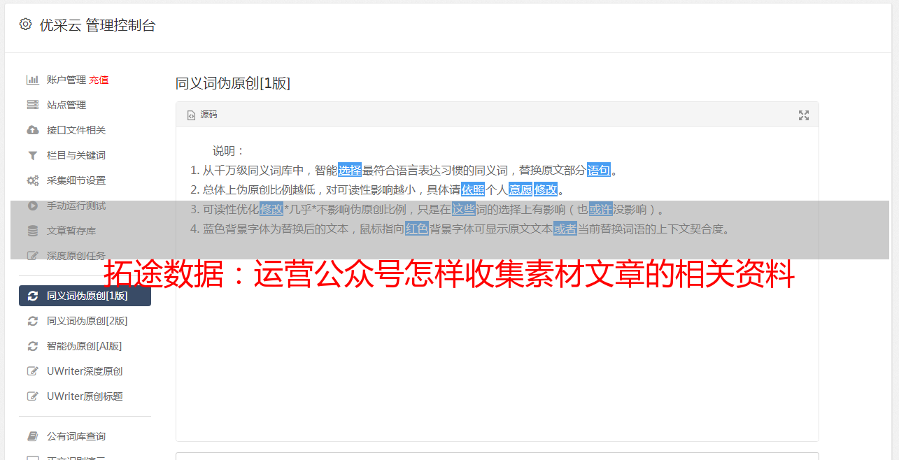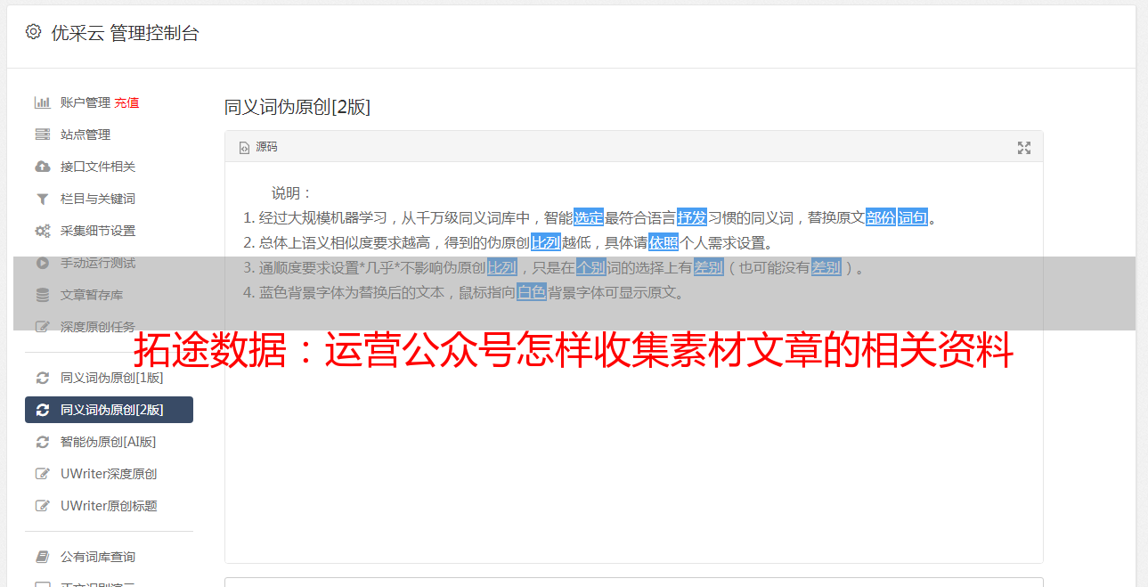 对于正式帐户运营商来说,物料文章的采集非常重要,因为它可以有效地提高文章的质量。下面我们就跟着拓图数据来了解一下公众号的操作方法。采集素材文章的相关信息。