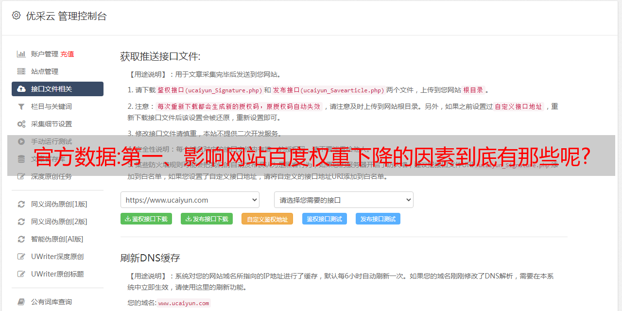 优采云 发布时间: 2022-12-10 00:53官方数据:第一、影响网站百度权重下降的因素到底有那些呢?