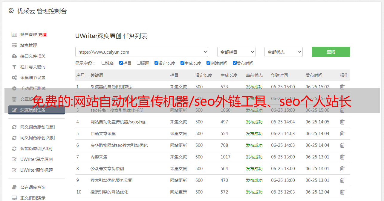 优采云 发布时间: 2022-12-10 07:19免费的:网站自动化宣传机器/seo外链工具、seo个人站长