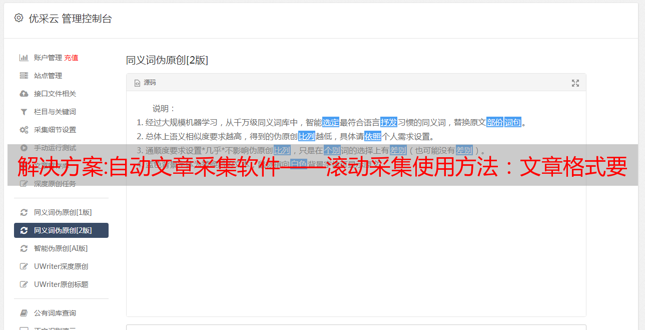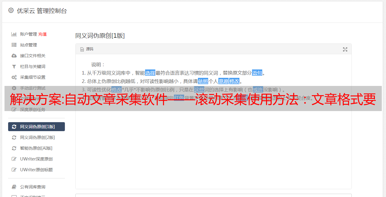 优采云 发布时间: 2022-12-13 02:17解决方案:自动文章采集软件——滚动采集使用方法:文章格式要用正确的id标签点