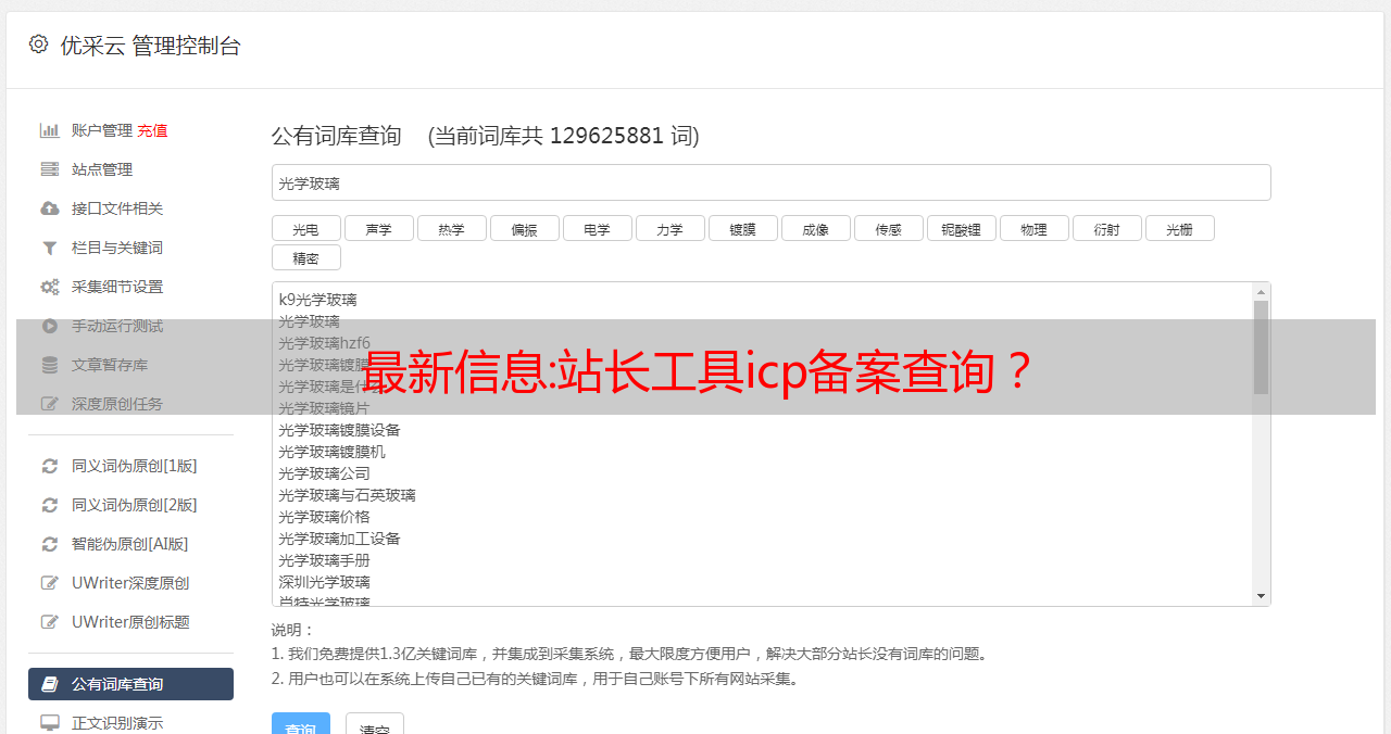 优采云 发布时间: 2022-12-13 14:32最新信息:站长工具icp备案查询?