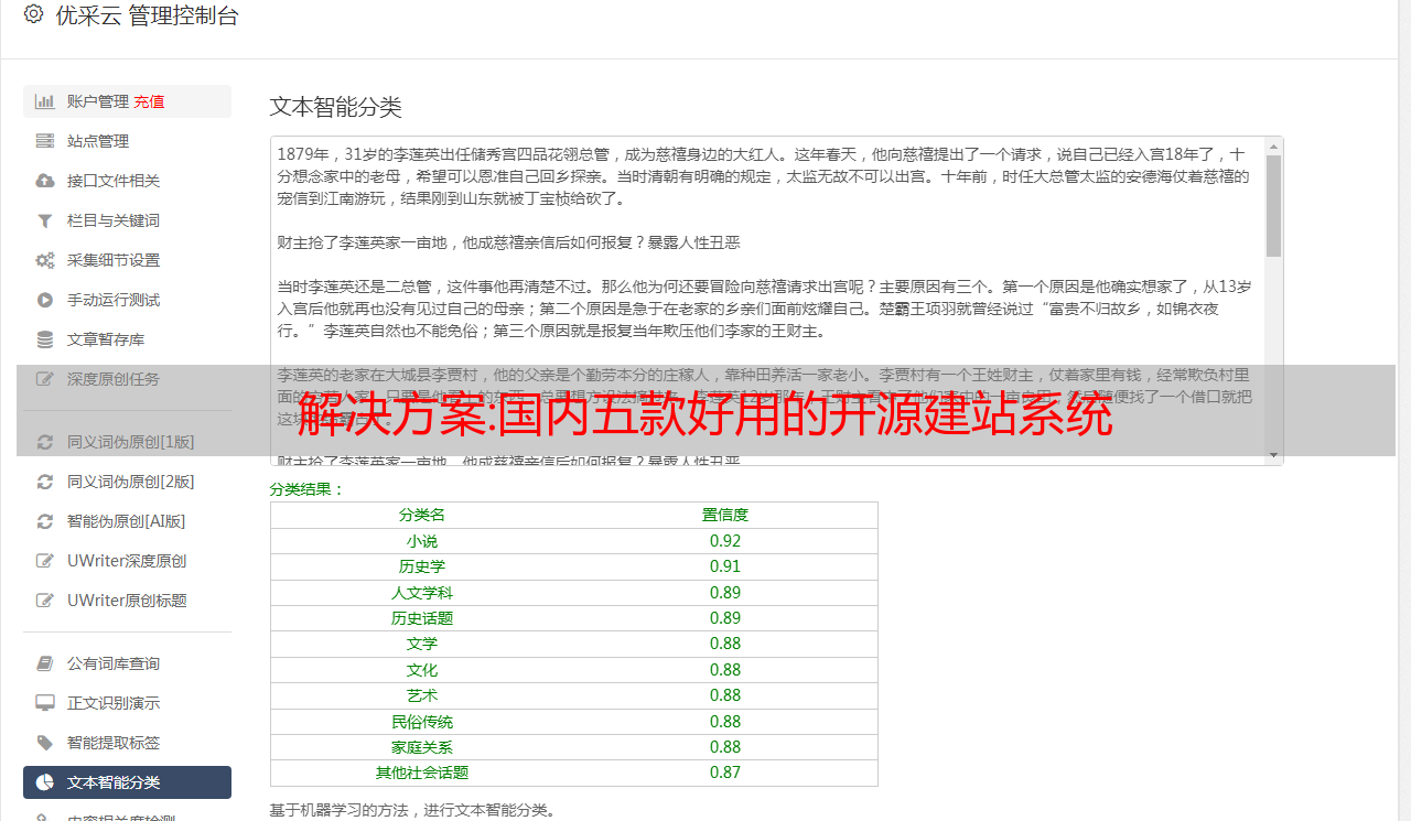 优采云 发布时间: 2022-12-14 18:47解决方案:国内五款好用的开源建站系统