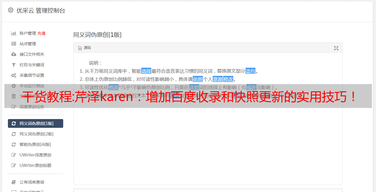 优采云 发布时间: 2022-12-14 21:42干货教程:芹泽karen:增加百度收录和快照更新的实用技巧!